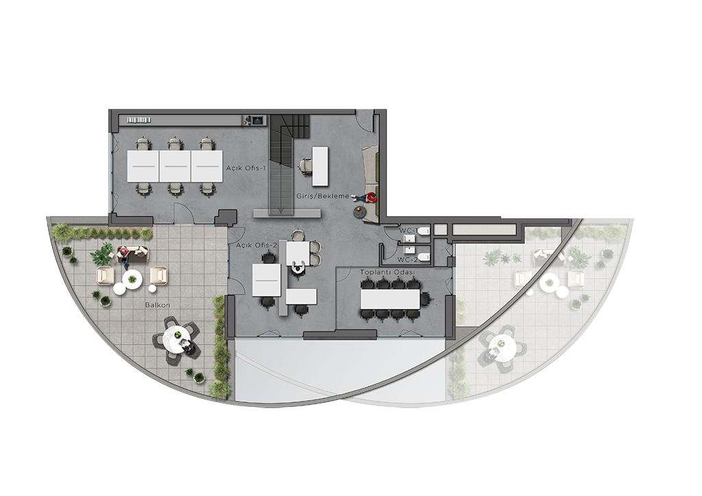 Ofisler Shell&Core (ileri kaba) olarak teslim edilecektir. Görseller, fikir vermesi açısından örnek olarak tasarlanmıştır.