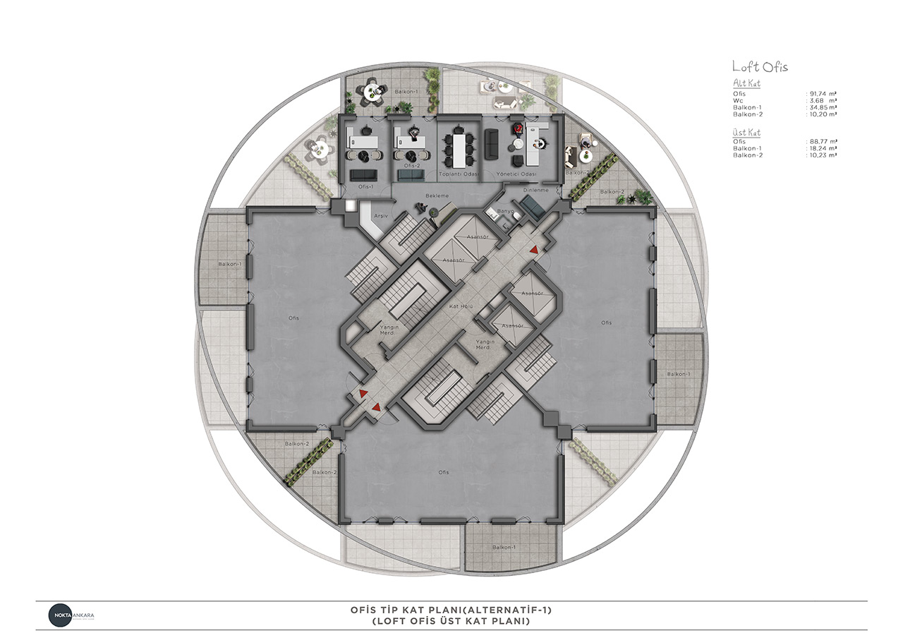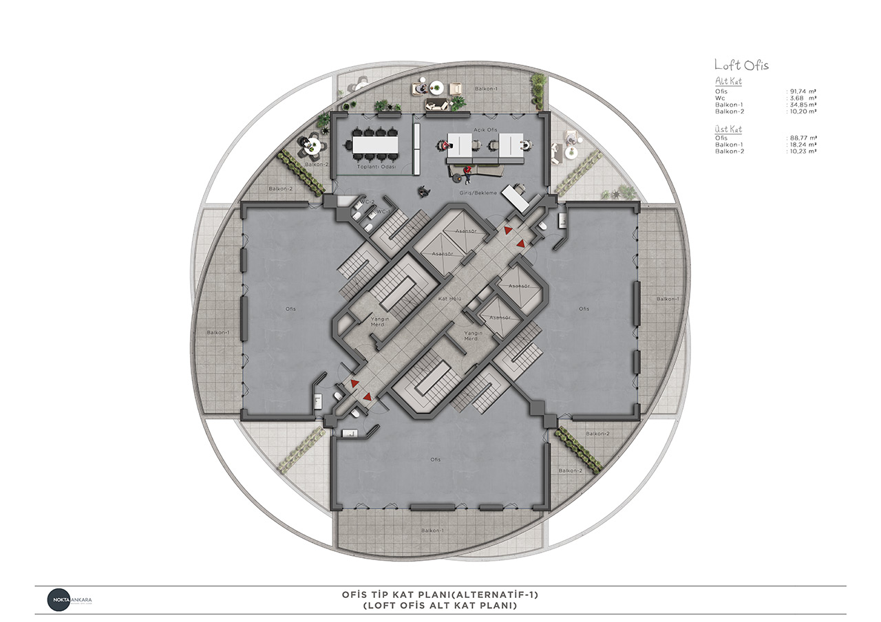 Modern bir mimaride tasarlanmış lobisi, dubleks ofisleri, ferah ve aydınlık bir çalışma ortamı sunan terasları, 24 saat güvenlik hizmetleri ve kapalı otopark…
